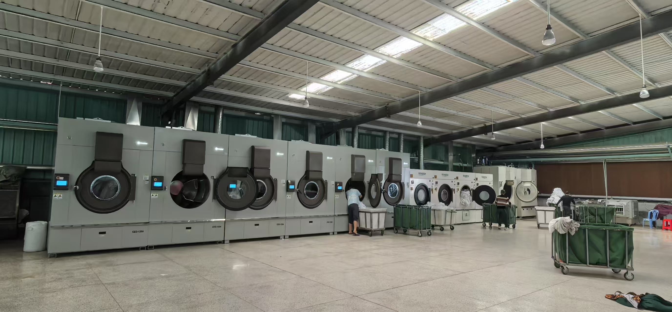 作为南安市规模最大的专业洗涤工厂,该洗涤服务部承担着本地大量的酒店布草洗涤工作。随着业务量的持续增长,原有设备已难以满足日益提升的洗涤需求。经过多方考察比较,服务部最终选择航星作为设备升级的合作伙伴。
