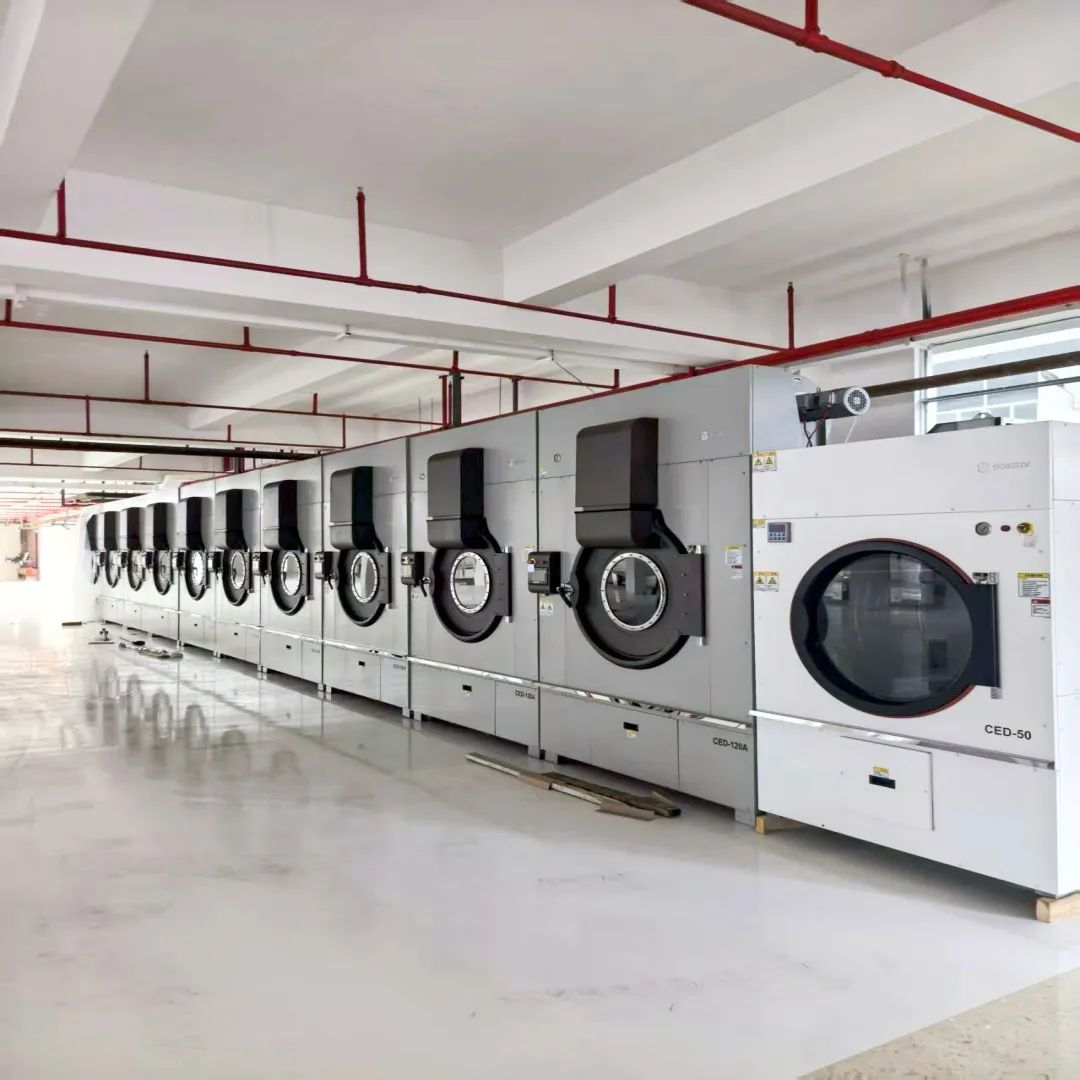 近日,广州某知名医疗洗涤企业引进了一批航星医用级隔离式洗脱机及配套烘干设备,目前设备已顺利进驻洗涤车间,完成了安装调试工作,即将正式投入使用,为当地医疗洗涤服务提供专业设备支持。